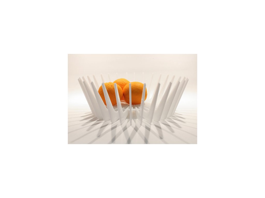 Originální mísa z tvorby designéra Jakuba lekeše vyrobena a sestavena z jednotlivých lamel čtyřmilimetrového mléčného plexiskla řezaného laserem. Vtipný lehký design evokující výrobky ze stavebnice a futuristické vize návrhářů.