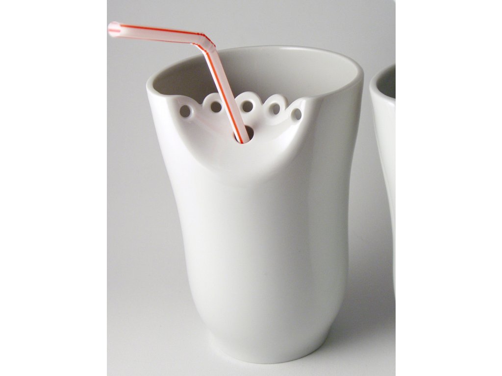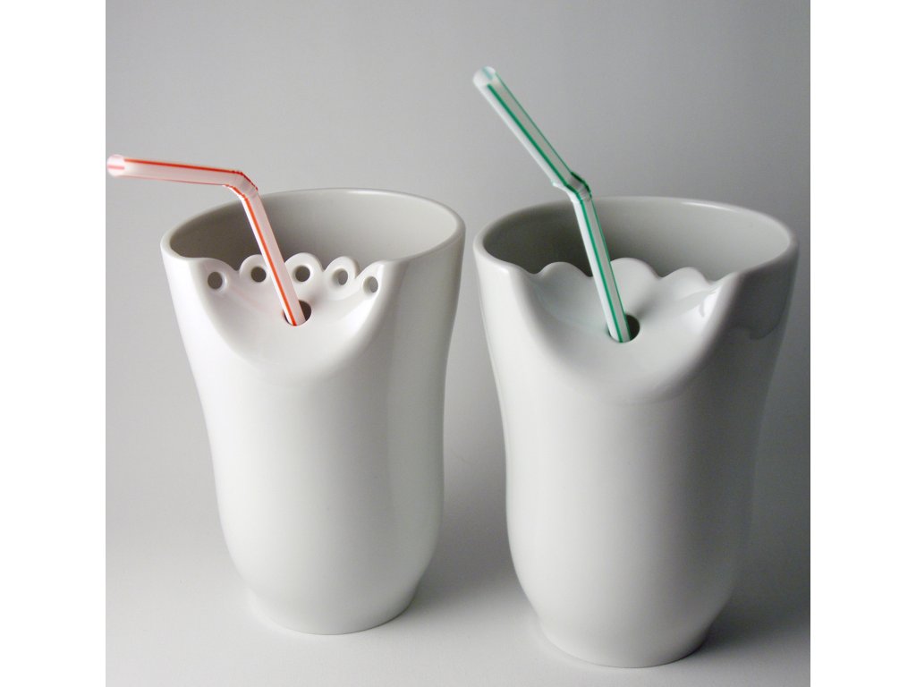Originální, ručně vyrobené, porcelánové pohárky s otvorem pro brčko. Vhodné i pro děti. Spíše na studené nápoje, koktejly atd.